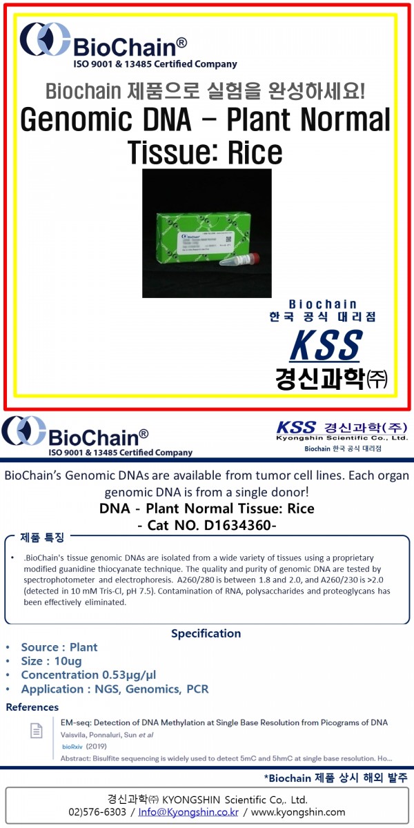 Genomic DNA - Plant Normal Tissue: Rice 페이지 정보 작성자 Kyongshin 작성일22-04-08 09:24 관련링크 https://www.biochain.com/genomic-dna-plant-normal-tissue-rice 11769회 연결 이전글 다음글 목록 본문 #경신과학 #KSS #Biochain #D1634360 #GenomicDNA #Rice #Plant #PCR #NGS #Genomics 이전글 다음글 목록