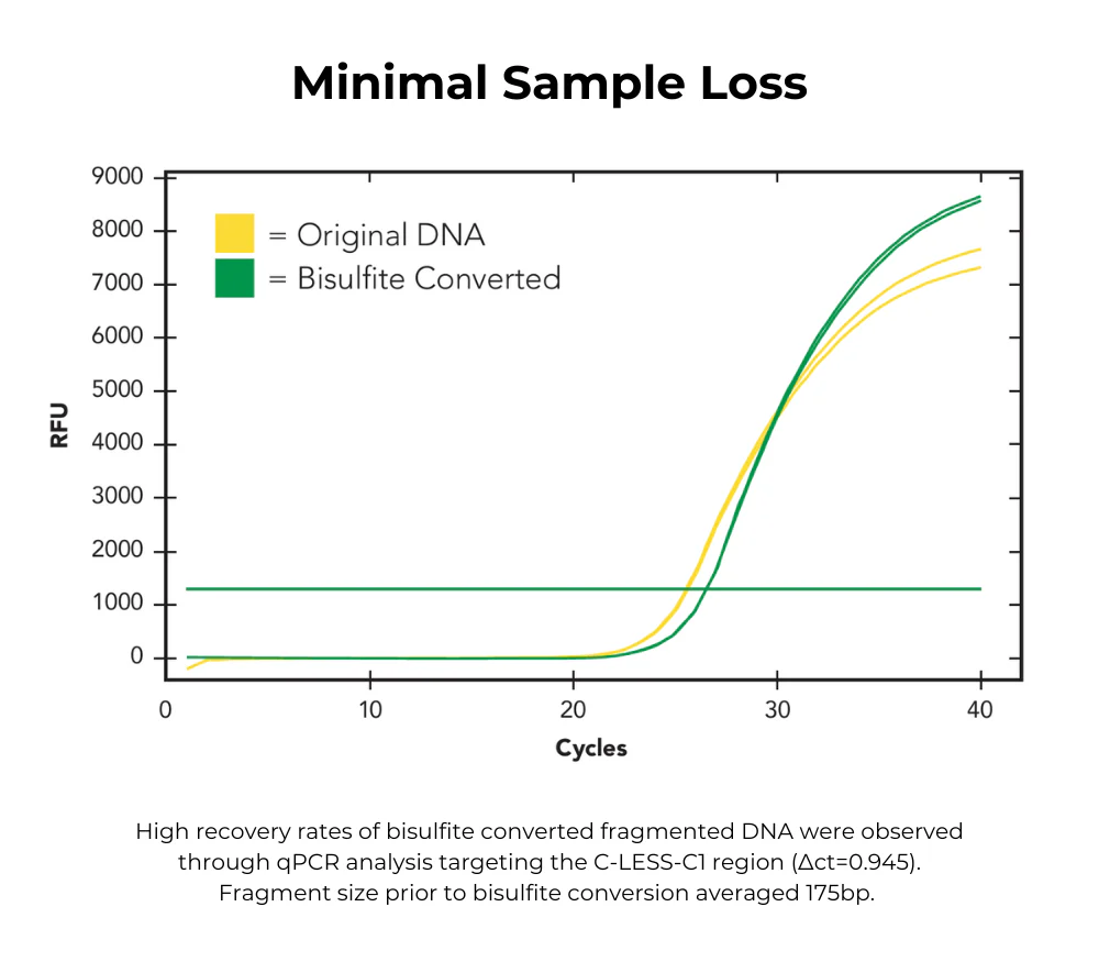 High-yield, converted DNA is ideal for PCR, Methylation Specific PCR (MSP), arrays, library preps, Next-Generation sequencing, etc.