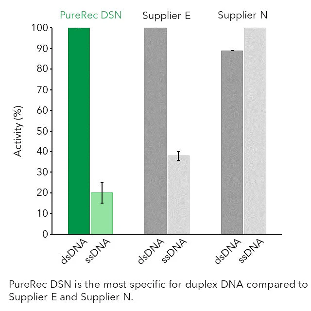 PureRec DSN is overexpressed and extensively purified from a non-animal source and is free of non-specific nucleases or RNases.